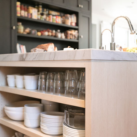 A father with three growing kids needed an updated home that would function in a way that served his lifestyle. It was clear from the onset that he could see his house as a valuable tool in creating deep and meaningful collaborations within its walls. Architect Richard Terrones of DTA had opened up the home's rear to harmonize compositionally without mimicking the traditional facade. In turn, clean lines and large modern Bonelli windows saturated the new addition and provided an easy segue to the outdoors. The challenge for us on the interior side would be to create working spaces in the home that would meet one busy man's needs and, at the same time, provide finishes that could act as a liaison between old and new.